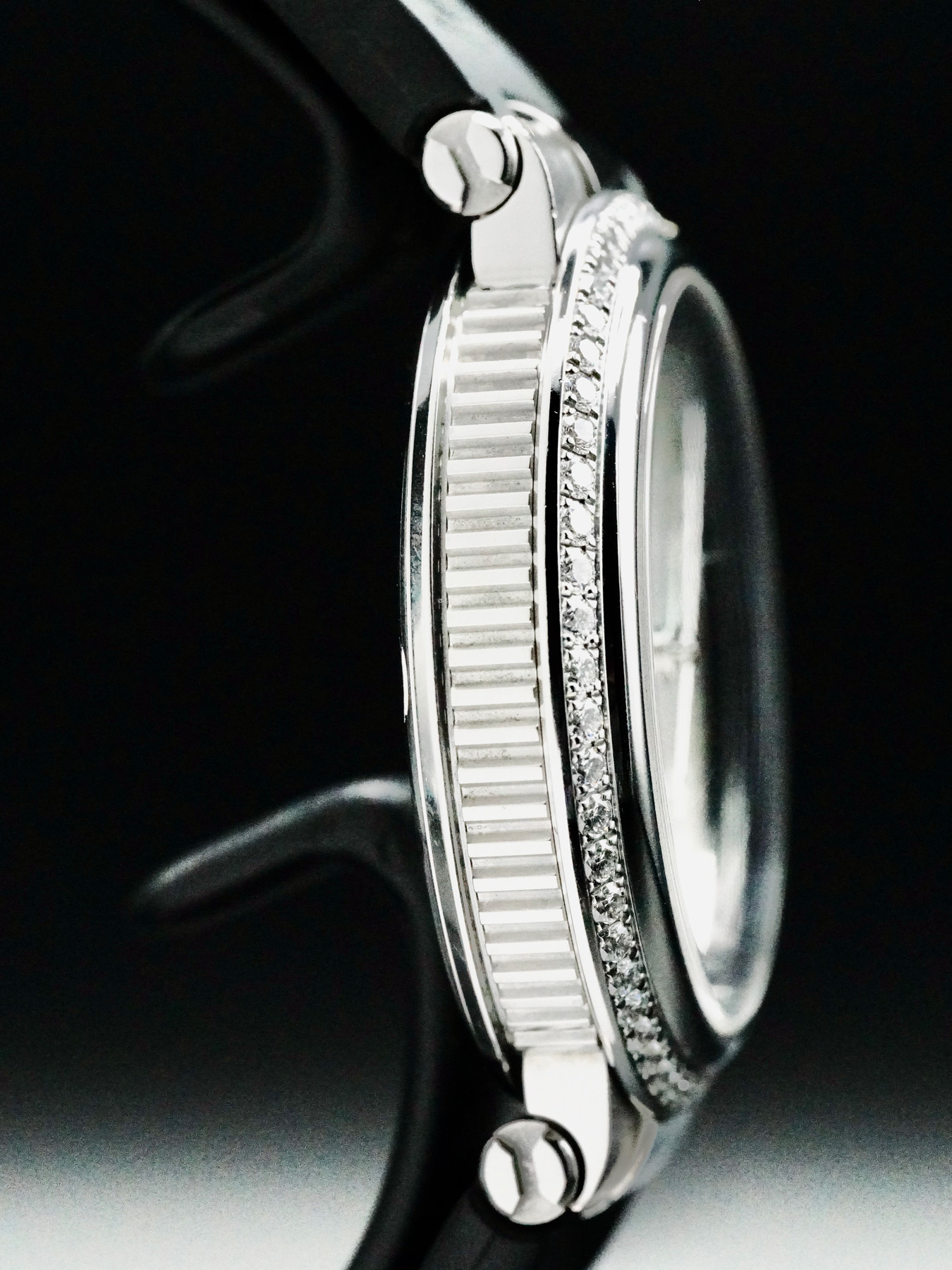 This watch features a 33 mm stainless steel case on rubber strap. This watch also sports a white dial. Powered by a mechanical automatic movement. Water resistance up to 50 meters.