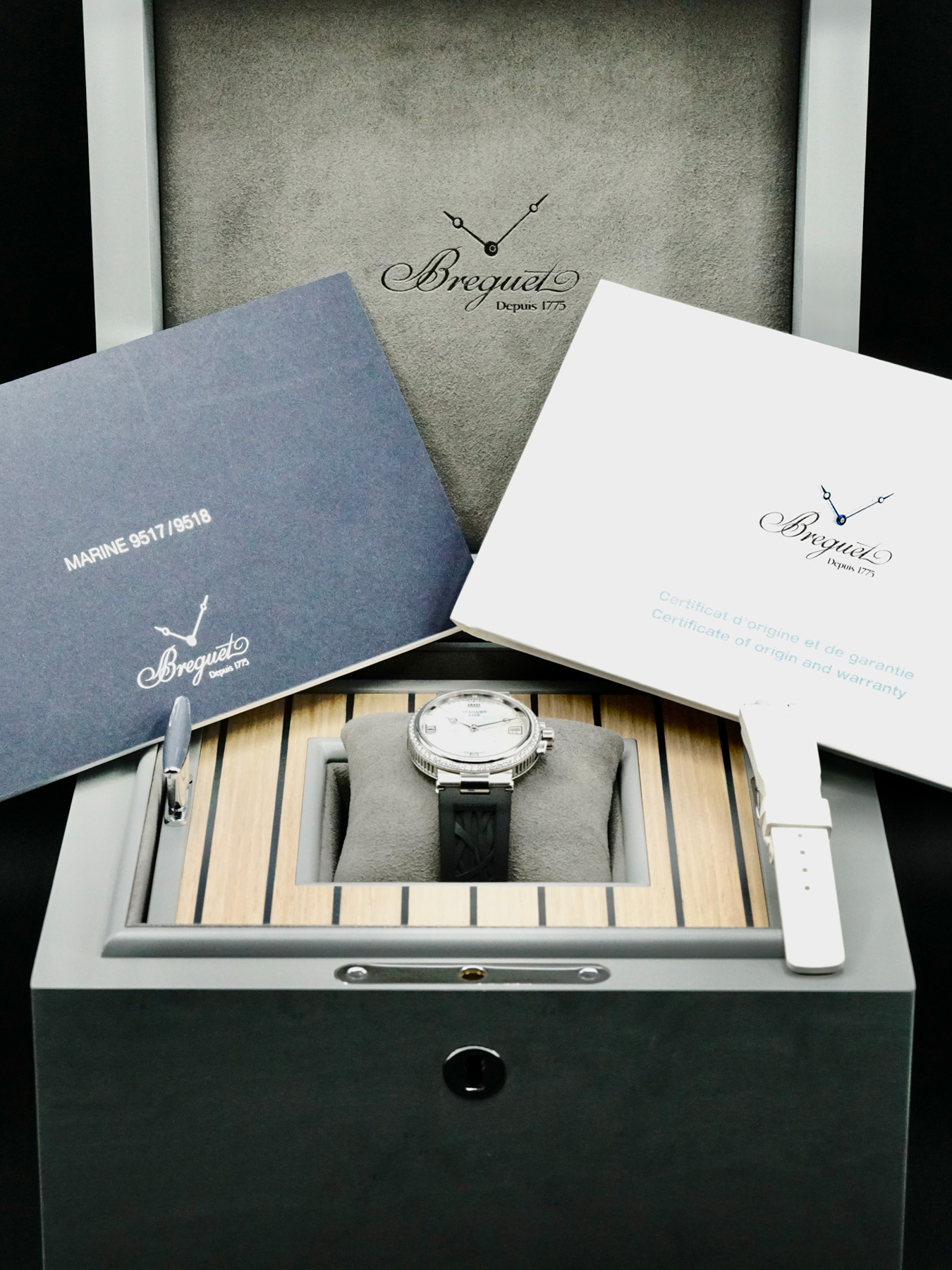 This Breguet 9518ST/5W/584/D000 Marine is in EXCELLENT condition. This watch includes its Original Box and Warranty Dated 2022. Extra white rubber strap. This watch has been fully authenticated and certified by Exquisite Timepieces.